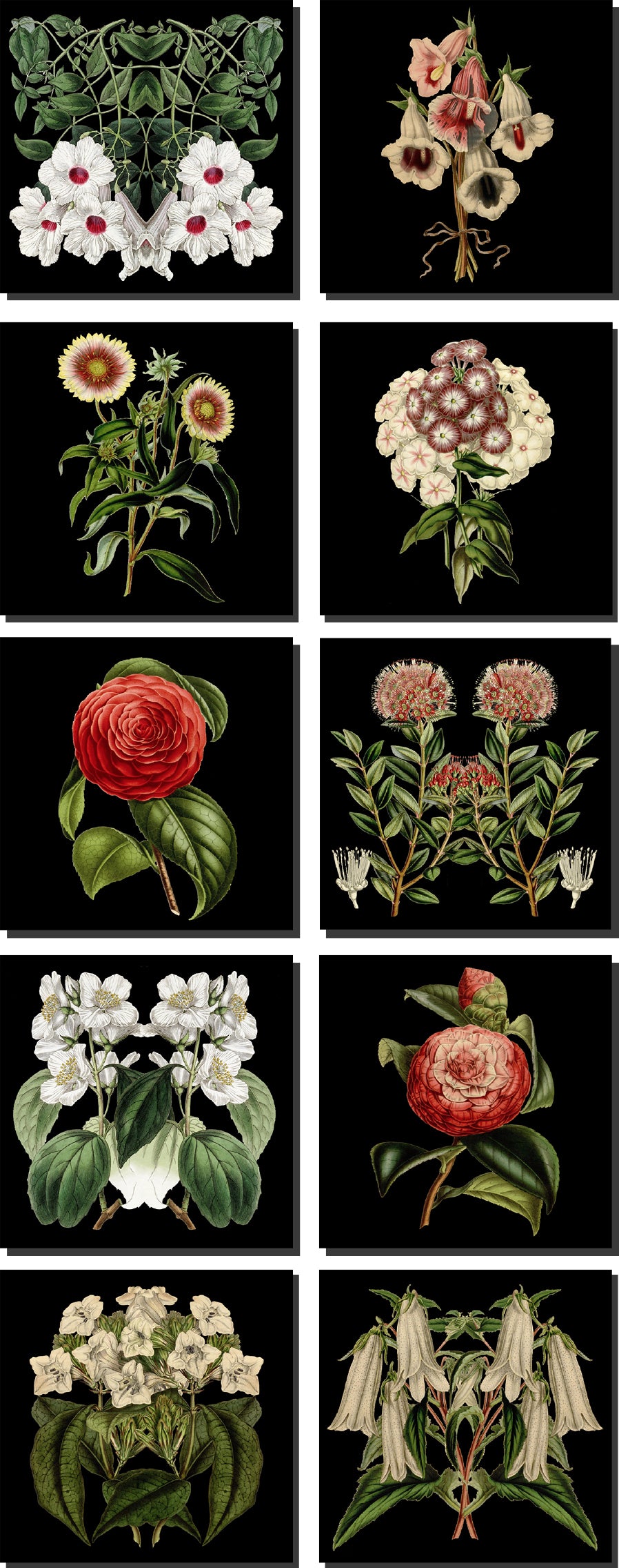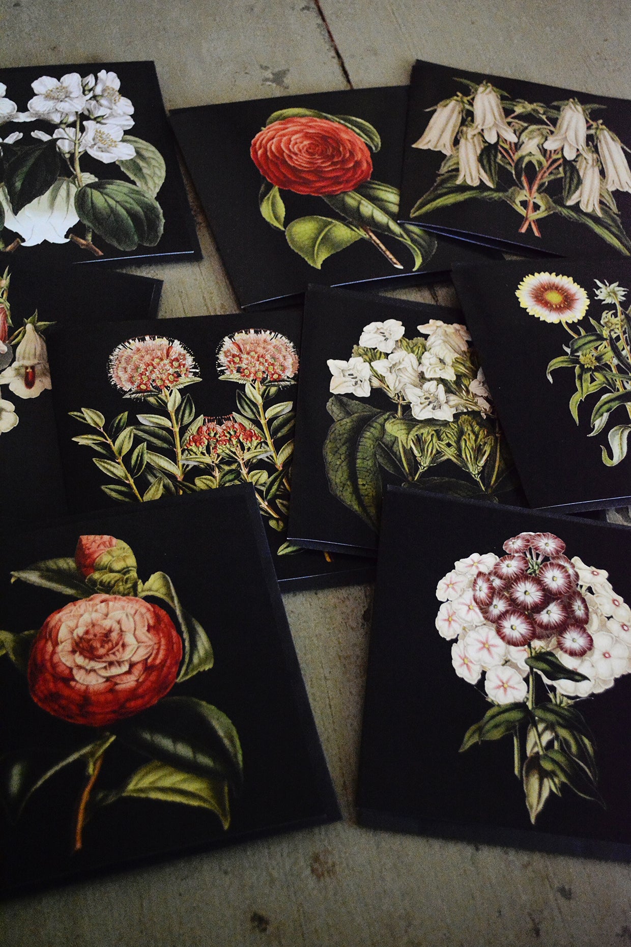 Set of 10 Botanical Square Cards with artworks from Hendrik Willem's vintage botanical collection - printed on 200gms art paper with Black Envelopes.